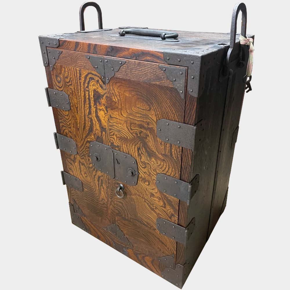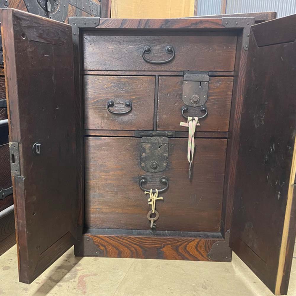 元は金庫のようなものとして使われていた背負子の箪笥です。全体を修復して鍵も付け直しました。