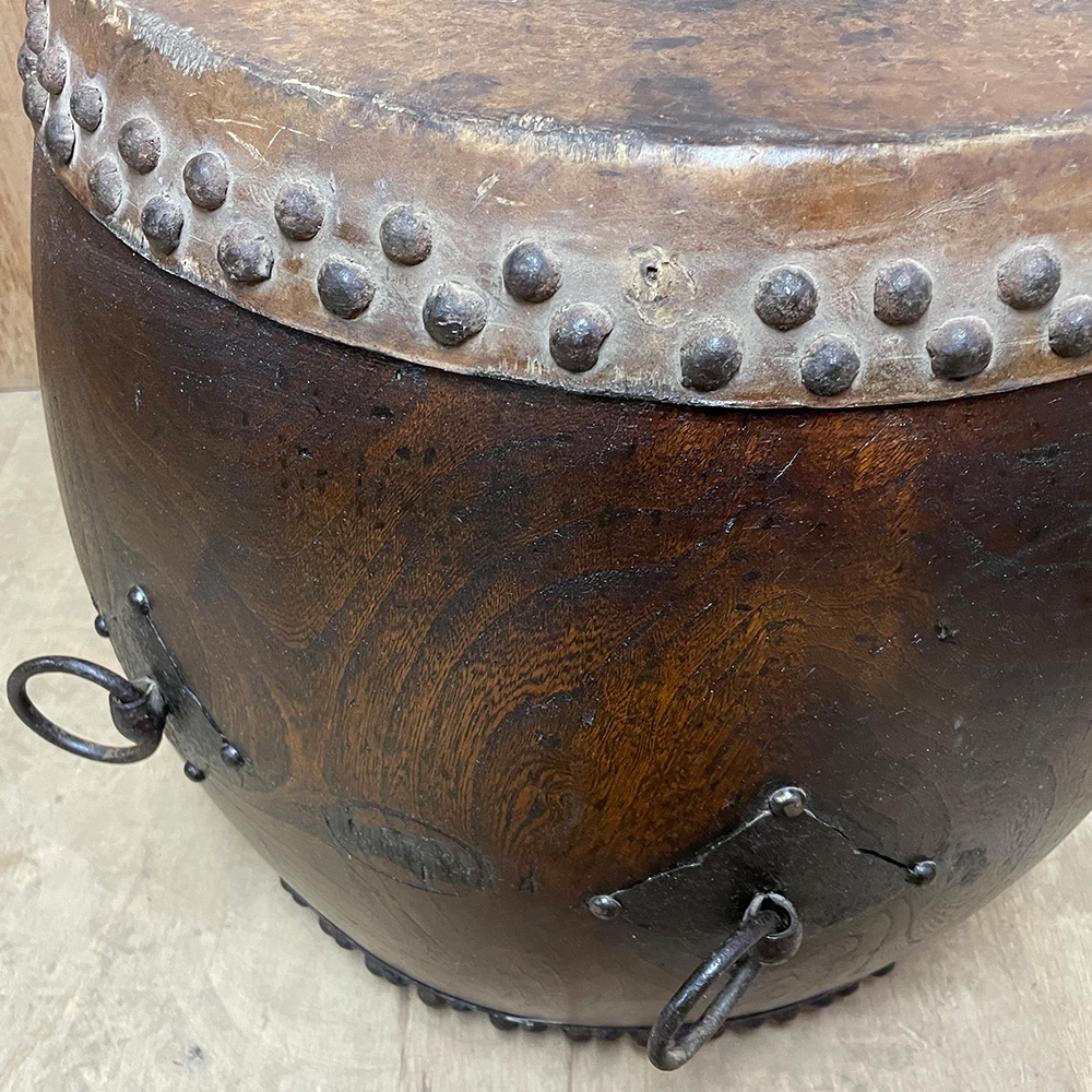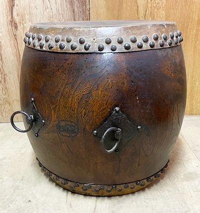 胴の部分は江戸時代〜明治時代(確認できていません)位の古い和太鼓。割れもなく比較的綺麗な状態です。革の部分を張り替えれば太鼓としても使えます。