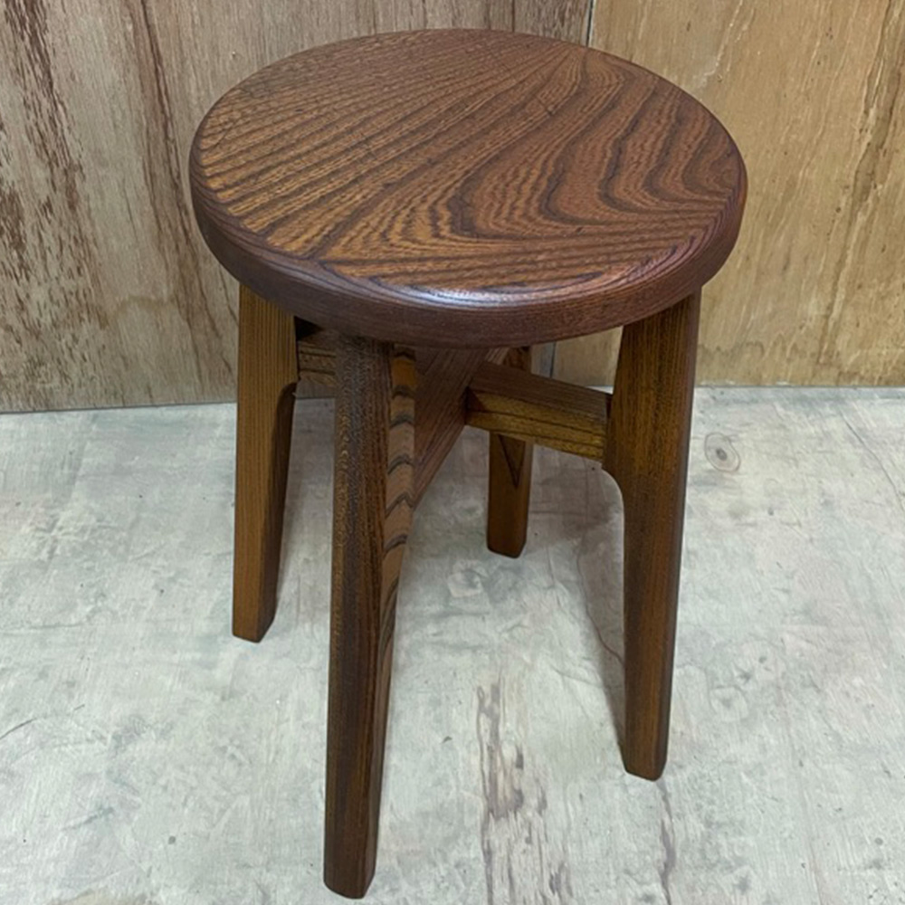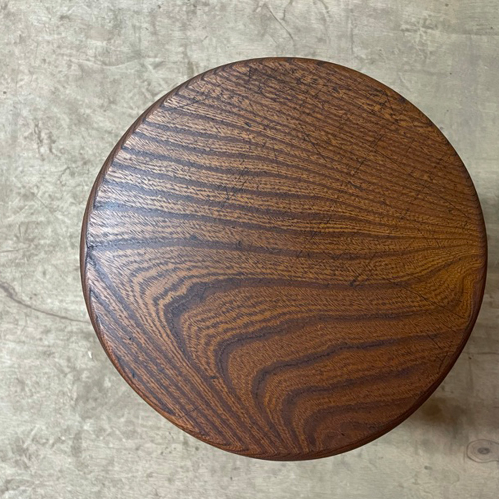 古材を使用して作ったオリジナルの小さめの椅子。天板部分は一枚板。漆塗り1回で仕上げました。椅子としてはもちろん、植物の台などインテリアにも良いサイズ感です。